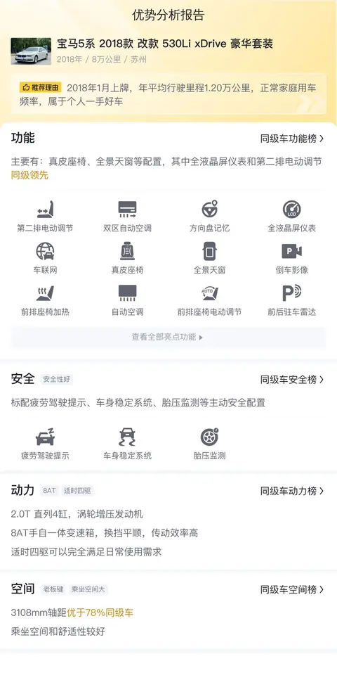 另外,这款宝马5系 2018款 改款 530Li xDrive 豪华套装的10年平均用车成本是16433元/年,40岁以上的成熟男性用车比较多,这个年龄阶段的人更注重舒适,这辆车正合适。