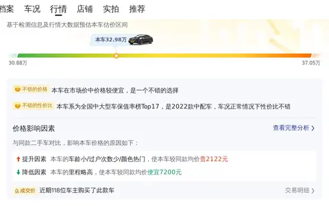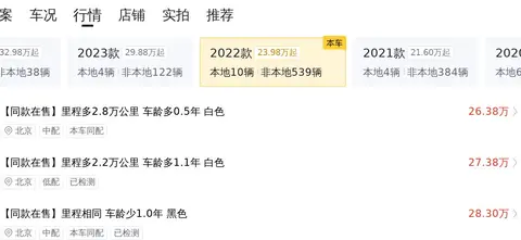 当前市场上,这款车的二手车行情大致在30万至37万左右。这里值得一提的是,市场行情价和最终成交价是有差异的,车辆的最终售价会由车龄、里程以及保养情况等不同变量所决定。