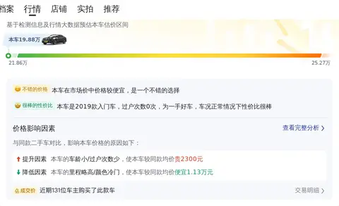 综上所述的新车含税价、用车成本、市场行情、优势分析、同款比价等数据仅供参考。在配置部分,因为二手车非标品,车辆可能会存在配置改装的情况,具体车况信息需要线下结合车辆实际情况进行综合参考。