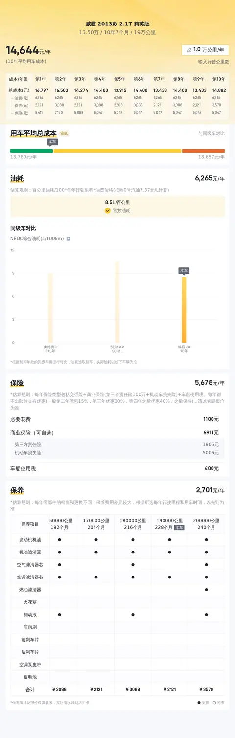 燃油消耗方面,这款车的官方油耗为8.5升/百公里。然而,受驾驶习惯、路况等因素的影响,实际油耗可能会存在一定的波动。按照当前柴油价格约为7.5元/升计算,每年的燃油费用大约在14500元左右。这一费用在同类车型中属于较高水平,但仍然在可接受范围内。
