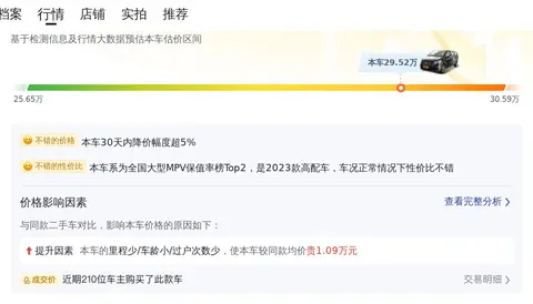 报价相对较高,威霆 2023款 2.0T 商务版 7座的市场行情价是25.65万-30.59万,它的报价是29.52万,价格上不太占优势,不过从2024年8月才开始投入使用,同时行驶里程也较少。