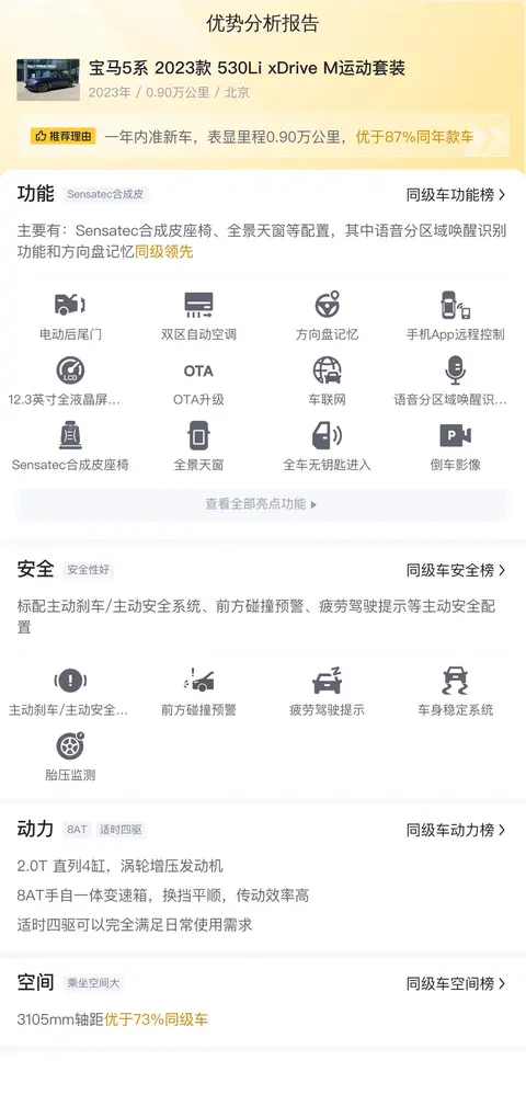 这辆宝马5系的优势方面,我认为比较明显的是其出色的动力性能和操控性。作为一款豪华中大型轿车,在动力储备这块儿必须得充足,而这辆车搭载的2.0T发动机,无论是马力还是扭矩都表现的比较优秀,可以满足大多数日常驾驶需求。同时,宝马一贯优秀的底盘调校和8AT变速箱的高效顺畅,让这辆车在操控方面有着良好的口碑。