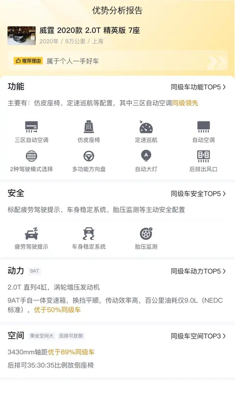 据估算,同级车的最低用车成本是13989元/年,最高是18771元/年,威霆 2020款 2.0T 精英版 7座是15130元/年,属于适中水准。