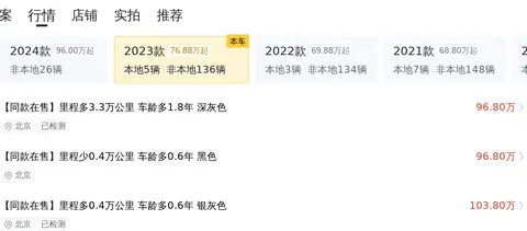 车源地和挂牌地都是南京。首次上牌时间是2023年12月,有过1次过户。这辆车的报价是97.8万,比新车含税价优惠18.99万。