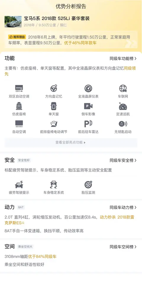 综上所述的新车含税价、用车成本、市场行情、优势分析、同款比价等数据仅供参考。在配置部分,因为二手车非标品,车辆可能会存在配置改装的情况,具体车况信息需要线下结合车辆实际情况进行综合参考。