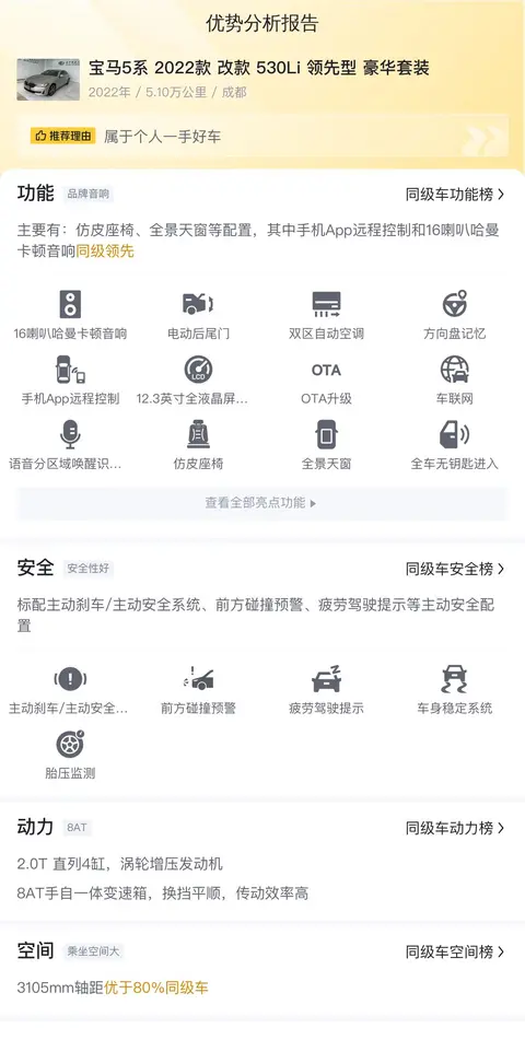 综上所述的新车含税价、用车成本、市场行情、优势分析、同款比价等数据仅供参考。在配置部分,因为二手车非标品,车辆可能会存在配置改装的情况,具体车况信息需要线下结合车辆实际情况进行综合参考。