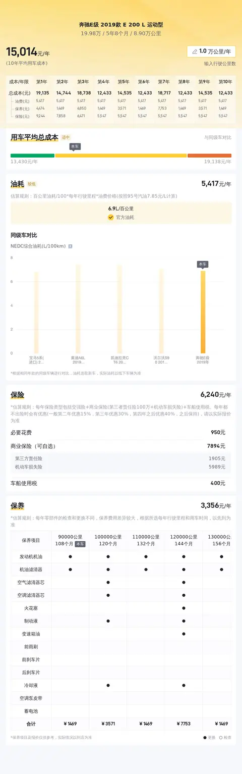 选取二手车时,了解市场行情至关重要。目前,这款奔驰E级的二手车行情大致处于24万至28万之间。接着,我们来看看这款车的用车成本。据估算,这辆奔驰E级的年均综合用车成本约为1.5万元,然而具体金额还需依据车主的实际使用情况而定。