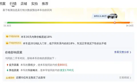 这辆沃尔沃XC60 2018款 T4 智逸版的市场行情价是11.32万-14.14万,它的报价则是13.8万,报价虽然合理,但没有明显优势,不过它的保值率较高,且0过户。