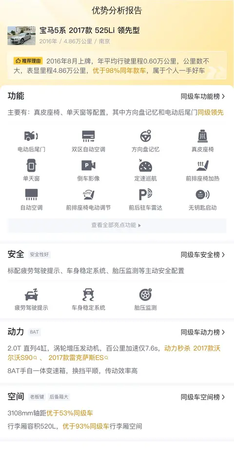 宝马5系(图片|配置|询价),作为宝马品牌的中坚力量,自1972年第一代问世以来,便以其卓越的性能和优雅的设计赢得了全球众多用户的青睐。历经数代演进,宝马5系不断提升驾乘体验,成为商务与日常出行的理想选择。今天我们就为您带来一辆二手宝马5系,具体版本为——2017款525Li领先型。