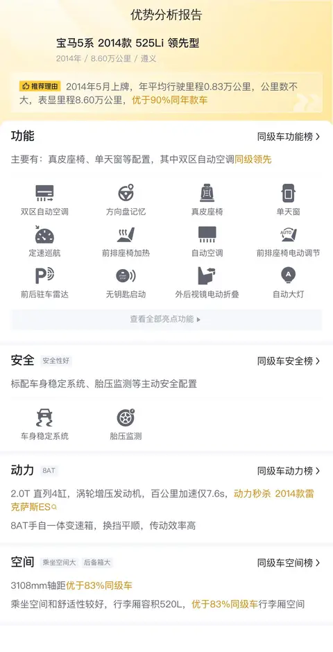 市场行情方面,这款宝马5系的二手车行情大致在9.81万至12.77万之间。具体的价格因车辆的车龄、里程以及保养情况等不同情况而定,而本车11.6万的报价则基本符合市场行情。