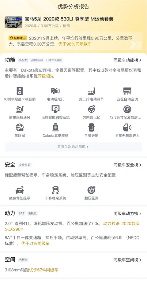 综上所述,这辆二手宝马5系 2020款 530Li 尊享型 M运动套装以其卓越的车况、豪华的配置以及合理的价格,成为了二手车市场中的一颗璀璨明珠。它不仅能够满足您日常出行的需求,更能为您带来尊贵的驾乘体验。如果您正在寻找一款性价比高、品质出色的豪华轿车,那么这辆二手宝马5系无疑是您的理想之选。