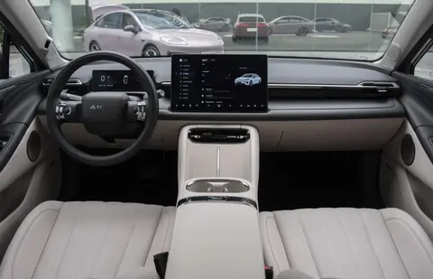 广汽AION RT在内饰设计方面,AION RT采用时下流行的简约设计风格,屏幕布局方案为中控大屏幕与液晶仪表屏相互配合的方案。广汽AION RT的中央扶手台有两处手机槽,倾斜角度较大,左侧配有50W无线充电板和冷却风口。下方镂空位置设有点烟器和USB-C、USB-A接口,上下层之间留有走线孔,方便线束的整理收纳。