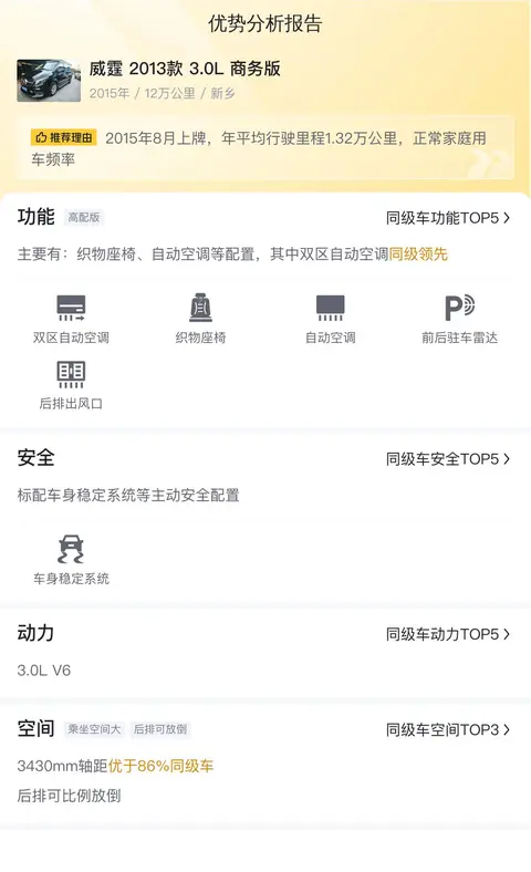 综上所述的新车含税价、用车成本、市场行情、优势分析、同款比价等数据仅供参考。在配置部分,因为二手车非标品,车辆可能会存在配置改装的情况,具体车况信息需要线下结合车辆实际情况进行综合参考。