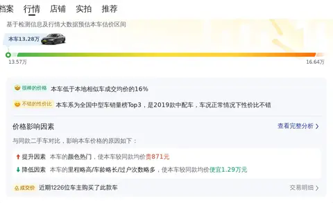 在二手车市场中,奥迪A4L 2019款 40 TFSI 进取型 国VI的行情价为13.57万至16.63万,这辆车的报价为13.28万,报价低于市场行情,说明这辆车的性价比比较高。