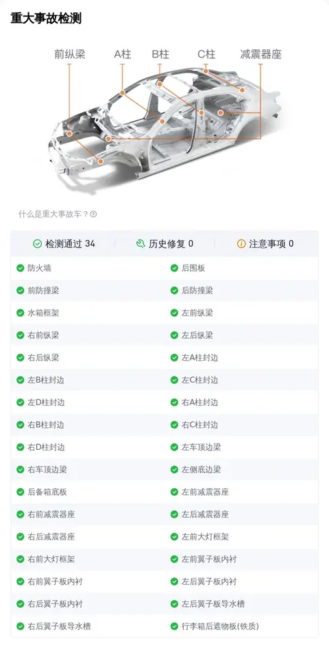 在车况部分,除了外观、内饰功能的检测,更多买家关注的是这辆车是否为“三非”车辆,三非就是指非重大事故、非火烧、非水泡。因为事故车、泡水车、火烧车都存在较大的安全隐患。不过您放心,这辆车已经通过了事故检测、火烧检测和泡水检测,可以确定它非重大事故车、非火烧车、非泡水车。