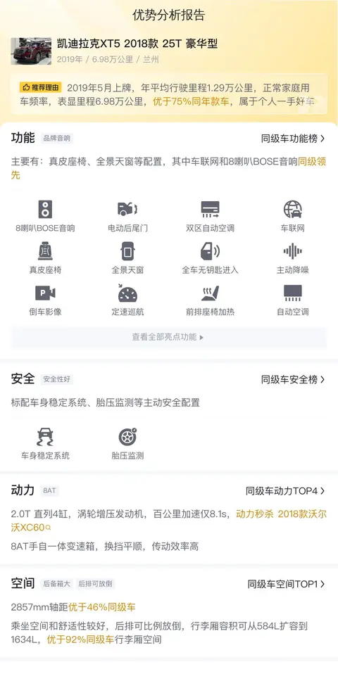 经过懂车帝300余项官方检测的凯迪拉克XT5 2018款 25T 豪华型,现在有完整的全车深度检测报告,全方位无死角的展示在消费者面前,只为了让消费者全面的了解这辆车。