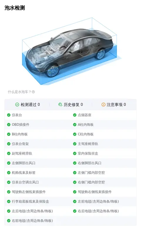 在车况部分,除了外观、内饰功能的检测,更多买家关注的是这辆车是否为“三非”车辆,三非就是指非重大事故、非火烧、非水泡。因为事故车、泡水车、火烧车都存在较大的安全隐患。不过您放心,这辆车已经通过了事故检测、火烧检测和泡水检测,可以确定它非重大事故车、非火烧车、非泡水车。