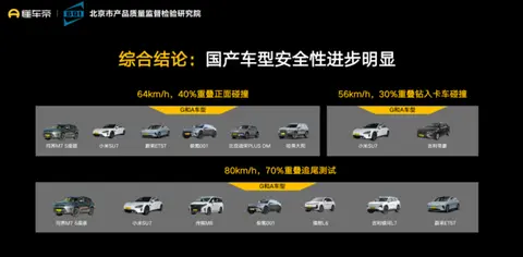此次碰撞测试包含 40% 重叠正面偏置碰撞、70% 重叠高速追尾、30% 重叠钻撞卡车等三个项目,共计进行了 90 次测试。测试选用了世界广泛使用的 Hybrid Ⅲ 50th 男性假人和 Hybrid Ⅲ 5th 女性假人,这些假人具备良好的数据采集系统,能在各类模拟事故中更真实地反映乘员受伤情况,得到全球各国检测检验机构的认可。