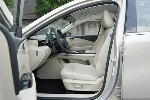 探讨一下五菱星光EV的内部空间。这款车的尺寸为4835mm×1860mm×1515mm,轴距为2800mm,这些数据接近于B级车型的标准,为家庭用车提供了宽敞的乘坐体验。当我这个身高183cm的人坐在后排时,腿部空间的宽敞程度令人印象深刻,大约有三拳的空间,足以轻松翘起二郎腿。车内宽度达到1860mm,即便是三名成年男性并肩坐在后排,长途旅行中也不会感到局促。座椅的舒适度也是一个亮点,皮质座椅柔软且具有良好的支撑性,长时间乘坐依然舒适,座椅表面的打孔设计也确保了良好的透气性。