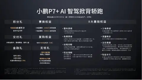 2024 年 11 月 7 日,广州讯。小鹏汽车重磅推出 “全球首款 AI 汽车” 小鹏 P7+,新车共发布三个版本,售价 18.68 - 21.88 万元。其中,限定版 Max 限量发售 500 台,提供专属设计与配置。至 2025 年 1 月 31 日 24 点前支付定金用户可享丰富权益,包括积分、置换补贴、充电卡、金融方案及交付礼等,可通过多渠道订购。