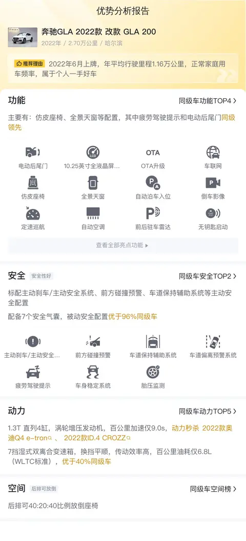 综上所述的新车含税价、用车成本、市场行情、优势分析、同款比价等数据仅供参考。在配置部分,因为二手车非标品,车辆可能会存在配置改装的情况,具体车况信息需要线下结合车辆实际情况进行综合参考。
