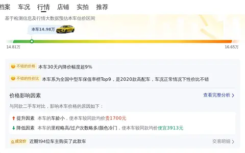 综上所述的新车含税价、用车成本、市场行情、优势分析、同款比价等数据仅供参考。在配置部分,因为二手车非标品,车辆可能会存在配置改装的情况,具体车况信息需要线下结合车辆实际情况进行综合参考。
