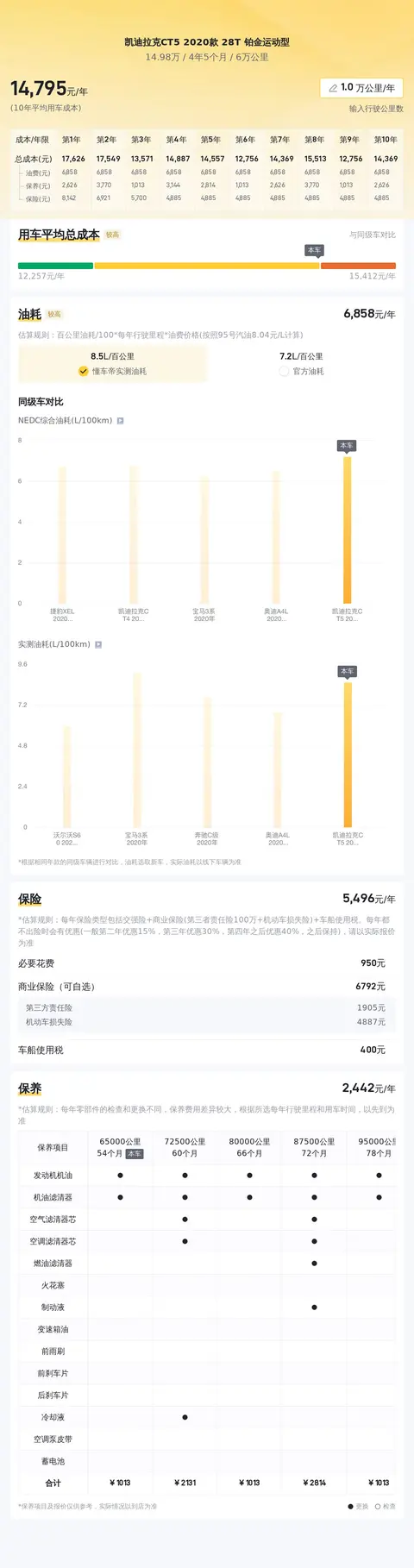 在选购二手车时,除了初始购车成本外,还需要考虑车辆的日常使用和维护成本。根据懂车帝平台的大数据分析,本车的预计年均综合用车成本大约为1.5万元左右。这一估算是基于类似车型在实际使用中的平均消耗水平,涵盖了燃油费用、保险费用、保养维护费用以及其他可能的开支。将车辆纳入日常生活中,还需预留一部分预算应对突发情况。实际用车成本可能会根据车主的驾驶习惯、行驶里程、地区差异、油价波动以及车辆维护状况等因素有所变动。例如,如果您住在一个生活成本较低的地区,或者能够通过节油驾驶习惯降低燃油消耗,那么实际用车成本很可能会低于上述估算。反之,如果车辆需要更频繁的维修或更换昂贵的零部件,实际成本可能会相应增加。在评估用车成本时,建议车主根据自己的实际情况和预期使用情况进行合理估算,以便更好地规划财务预算。