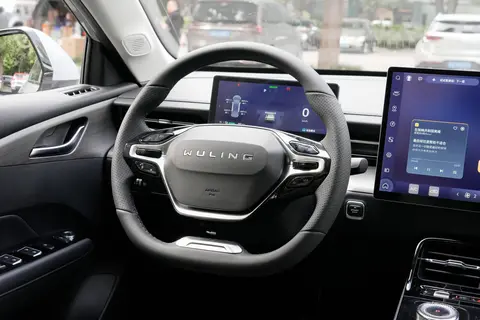 两款车型在显示屏配置上存在显著差异,其中高配版配备了一块8.8英寸的全液晶仪表盘和一块15.6英寸的悬浮式中控屏幕。该车机系统搭载五菱的Ling OS车载智能系统,支持车联网、OTA升级、手机APP远程控制等多种功能,其操作流畅,界面布局合理,功能分类清晰。在试驾过程中,我多次尝试了语音唤醒功能,仅需一句“你好,小菱”,车机助手便可即时响应,极为便捷。此外,Ling OS还兼容QQ音乐、爱奇艺等主流应用,在试驾时得以聆听音乐,车内音响效果令人满意,音质清澈,提升了驾驶过程的乐趣。值得一提的是,车内配备的PM2.5过滤装置有效净化空气,而方向盘采用双幅设计,塑料包裹使握感更为舒适,多功能方向盘上的按键布局合理,方便驾驶者进行操作。