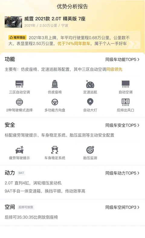 除了以上的配置,我们还对威霆2021款2.0T精英版7座车型的安全、动力、空间等方面与其同级竞品车型做了对比,以便大家综合了解这款车的整体产品力如何。