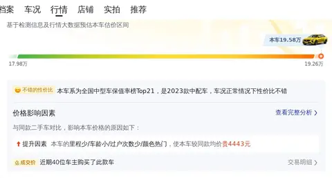 接下来我们要说的则是用车成本。这款车的百公里油耗大约为7升左右,平均每年的油费、保险费及保养费等费用大约在1.3万元左右。这里要说的是,每个人的用车场景和用车强度是不一样的,所以这个费用只能作为一个参考值。至于这辆车未来的保值率,根据我们的预估,这辆车现在售价19.58万,预计再行驶2年后可卖15万,约折价20.0%。这里要说的是,保值率跟车辆的保养情况、行驶里程、是否过户有直接关系,同时受到市场动向的影响,所以这个预估价格仅能作为参考。