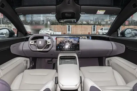 内饰方面,阿维塔 12 增程版采用环抱式座舱设计,暮紫/烟白的配色营造出舒适的氛围。35.4英寸的全液晶仪表盘,以及两侧的显示屏取代了传统后视镜,极大提升了车内的科技感。 15.6英寸的中控屏尺寸适中,设计也符合当下流行趋势,加上多屏联动,科技感十足,更易于年轻消费者接受。