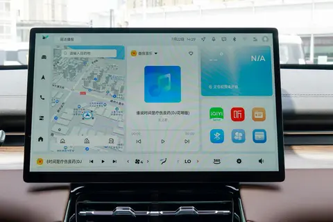 采用双幅式皮质方向盘和怀挡式换挡机构,中控台配备了8.8英寸仪表盘和15.6英寸悬浮式中控车机屏幕,画面显示清晰富有饱和度,运行起来丝滑流畅,反应速度快,没有明显的卡顿感。值得说的是,UI界面的布局合理,可进行多功能、多界面运行,互不打扰;左侧纵置和下方横置排列常用的功能快捷键,简洁直观,上手相当快。搭载了Ling OS智能系统,支持车联网、4G网络、OTA升级和“你好小菱”语音助手,拥有双区域免唤醒、连续对话和可见即可说功能,识别精准无误,像一些多媒体、导航、温度等都可通过语音指令操控,提升了驾驶安全性和专注性。