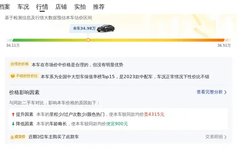 在了解一辆车时,除了看它的配置和性能,还要关注它的市场表现和用车成本。目前市场上,这款车型的二手车价格大约在31万至37万左右。当然,实际售价会受到车况等多种因素的影响。