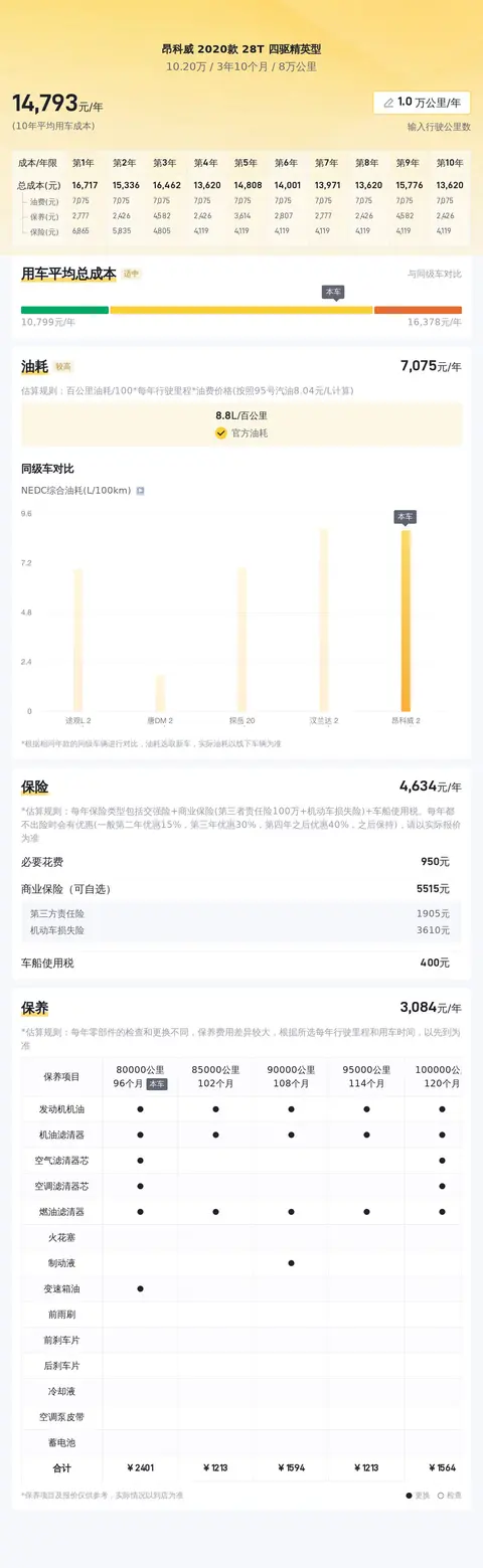 用车成本也是购买二手车时需要考虑的重要因素之一。这包括燃油消耗、保险费用、维修保养成本以及可能的额外支出。计算这些成本有助于评估该车型在长期使用中的经济性,进一步判断其作为二手车的价值是否合理。