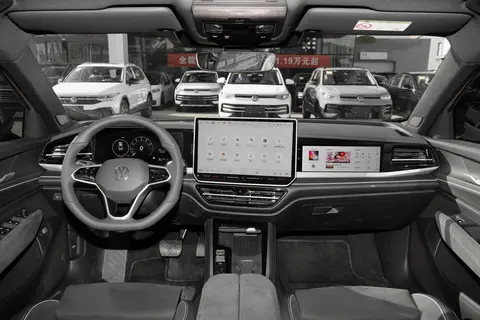 迈腾B9的内饰采用了温馨的环抱式设计。进入车内,三块屏幕映入眼帘,紧跟新能源时代的潮流。10.25英寸的全液晶仪表盘与抬头显示系统(HUD)相结合,让行车信息一目了然。中控台上是一块15英寸的大液晶屏,内置了高通骁龙8155车载芯片,保证了车机系统的流畅操作和快速响应。副驾驶前方也配备了一块11.6英寸的娱乐屏,加上30色氛围灯的映衬,科技感扑面而来。