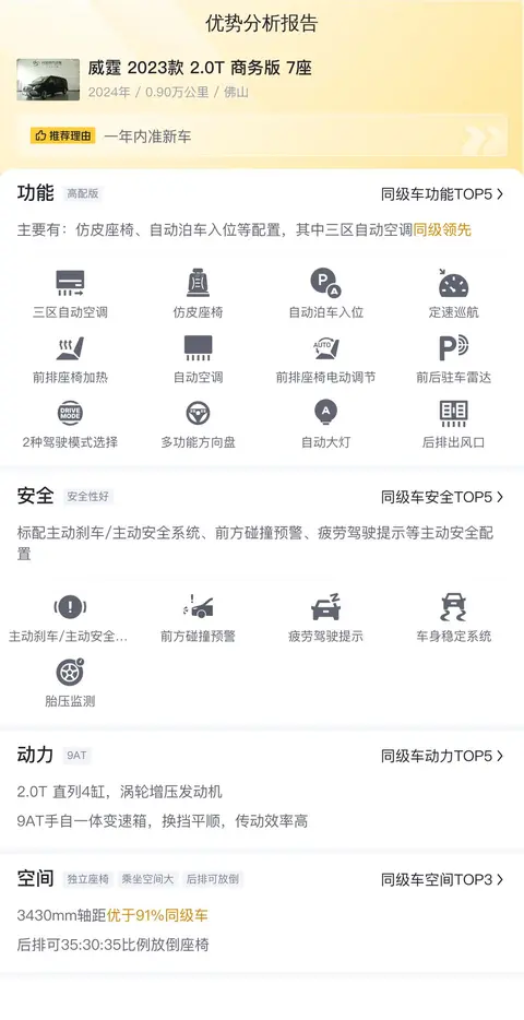 综上所述的新车含税价、用车成本、市场行情、优势分析、同款比价等数据仅供参考。在配置部分,因为二手车非标品,车辆可能会存在配置改装的情况,具体车况信息需要线下结合车辆实际情况进行综合参考。