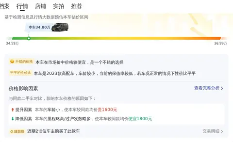 在价格实况板块,该车的价格显然是高于市场行情的,对此我们咨询了懂车帝二手车专业讲师,张老师给出的解读是:暂时未有足够数据支持该车价格合理性的一说,但可以肯定的是,影响二手定价的核心要素必然是取决于车辆的车况、里程、年限及过户次数等等,面儿上的瑕疵必将会在最终的成交价上体现出来,所以暂且不管该车34.8万的定价在市场中是什么水平,单从这不到一年的车龄和不足一万公里的里程以及1次过户的履历来看,它的性价比还是不错的,至于车辆是否存在肉眼不易察觉的面儿上或里子上的问题,这个只有通过实地考察才能感受得到,不过可以肯定的是,现阶段所呈现出来的车况是支持这个定价的。