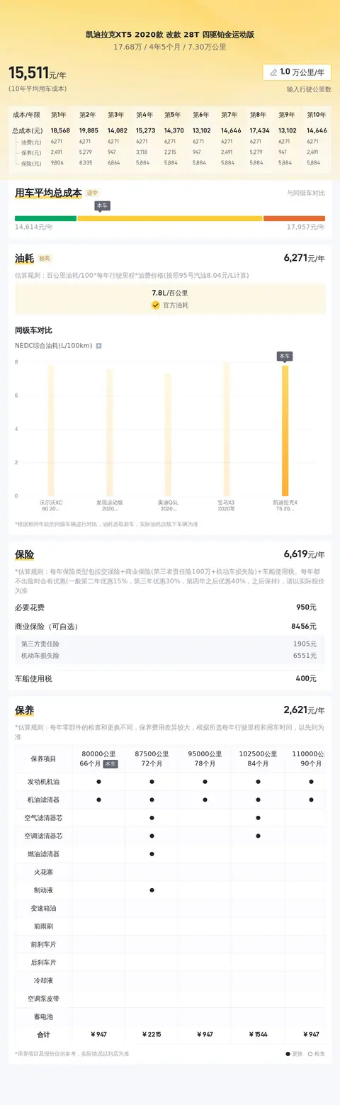 在不考虑其他支出的情况下,按照每年行驶一万公里计算,保险每年约5,504元,保养约2,570元/年,燃油费用约13,888元/年,其他费用根据个人情况而定,粗略估计每年约1,000元,那么一年的用车成本大约在22,962元左右。当然,这个数字会根据您的驾驶习惯、用车频率以及市场价格波动等因素有所变化。