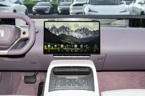阿维塔 12(用车口碑)的内饰设计极简,搭载15.6英寸悬浮式中控屏+ 35.4英寸4K一体远端屏,支持鸿蒙生态应用市场,用户可下载和管理第三方生态应用,拥有一屏多窗功能,构建了全屏、分屏、悬浮窗等丰富的窗口显示形式,满足不同场景下的交互需求 。此外,还有超级桌面、一碰传、无缝流转等功能,可以通过车机联通华为生态所有智能产品,实现了车机与手机等智能设备的深度融合。科技感十足,车内大部分区域采用全粒面Nappa真皮以及高规格亲肤PU材质覆盖,质感上乘。采用造型别致的D型方向盘,运动感较强,握感舒适,车内配备前排双零重力座椅,采用真皮材质,座椅舒适度高,能够为驾乘者提供良好的支撑和舒适的乘坐体验;后排座椅的仰角及包裹性也做得更加到位,后排腿部空间达到了1米,全系后排座椅加热,除了后排座椅靠背角度无法调节,基本就是行政级轿车的设定。
