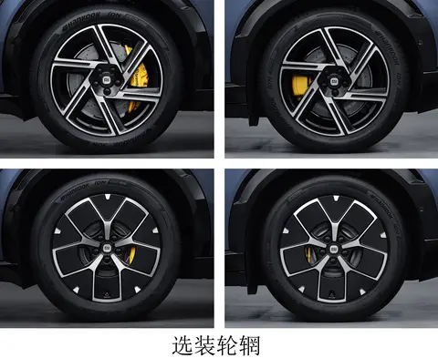 根据工信部信息,目前曝光的小米YU7为双电机版本,有19、20、21英寸三种轮毂可选,图片为20英寸的六辐式轮毂和19英寸的低风阻轮毂,搭配前四后单活塞的Brembo刹车卡钳,轮胎品牌为韩泰iON evo SUV系列,主打低滚阻和舒适,预计也会有更强调性能和操控的运动街胎可选。