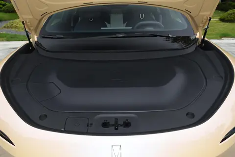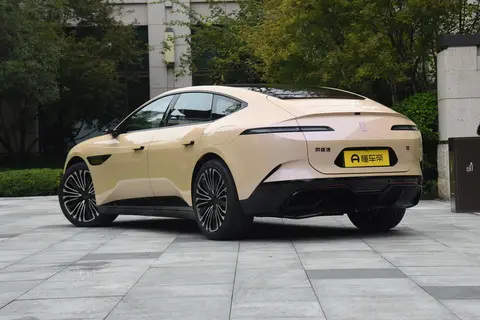 颜值方面,提供云紫、晖金、山蓝、皓白等外观颜色可选,加上整个具有未来感的设计理念,看上去时尚运动感较强。融入家族式的碟翼前脸设计,提供双层式LED灯带,并采用L形设计布局,显得格外醒目。前风挡下方配备有极为独特的上弦月HALO屏,由10500颗灯珠组成,能够显示丰富的信息。侧面来看,车顶为溜背式设计,车身侧面通过精致的前翼子板传感器,巧妙地塑造了一条优美的腰线,延展至车尾处。车窗面积进一步压缩,且边框为熏黑涂装,配隐藏式门把手以及规格为265/45 R20的轮胎。尾门为掀背式,配合无后舷窗设计、流媒体后视镜以及星轨式流光尾灯,给人一种概念车直接还原的感觉。