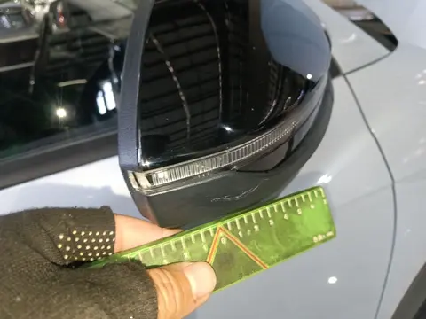 除了“三非”检测,在外观检测中,我们发现这辆车还是存在一些瑕疵的,具体的瑕疵项分别为左后视镜划痕、右后视镜划痕、左下边梁外饰板划痕。至于这些瑕疵的实拍图,下面我们将为您展示。