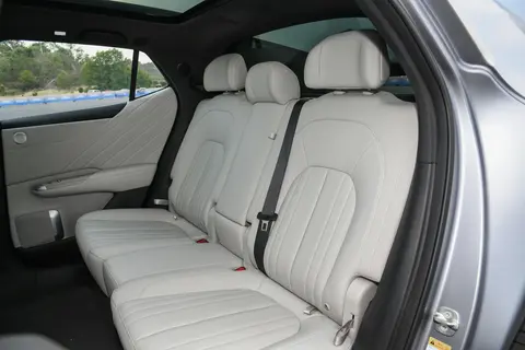 座椅采用了大五座设计,使用高档的Nappa真皮材料,具备加热、通风和按摩功能,确保即使在长途旅行中,乘客依然能享受到舒适的体验。前排座椅配备腿托功能,能够轻松调节,配合椅背放倒后,还能形成一个理想的单人车床,为旅途增添了一份惬意。此外,座椅的空间设计经过精心考量,无论是头部空间还是腿部空间都相当宽敞。以身高167cm的人为例,驾驶员将座椅调整到适合的位置后,头部空间依然有一拳两指的富余。而后排乘客同样能够享受到宽裕的舒适空间。这种人性化的座椅设计显著提高了整车的乘坐舒适性,为每一位乘客打造了愉悦的出行体验。