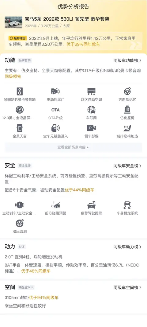 综上所述的新车含税价、用车成本、市场行情、优势分析、同款比价等数据仅供参考。在配置部分,因为二手车非标品,车辆可能会存在配置改装的情况,具体车况信息需要线下结合车辆实际情况进行综合参考。