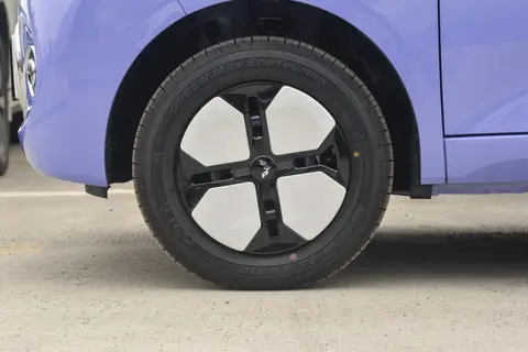 五菱宏光MINIEV的长宽高分别是3064mm×1493mm×1629mm,轴距是2010mm,尺寸是十分小巧的。不过五菱宏光MINIEV有130mm的离地间隙,通过性并不差。侧面只有一个门,采用传统的门把手设计,16英寸的轮毂,造型也特别的吸睛,有意思的是五菱宏光MINIEV车顶上竟然还有一个行李架,大平顶的设计车内的头部空间不会有什么问题。上半部分还有很多熏黑的设计。尾部同样是一块饰板,两侧还有圆形的尾灯,中间是一串英文的标识,下面还有两个圆形的反光饰板,夜间行车也会安全很多。