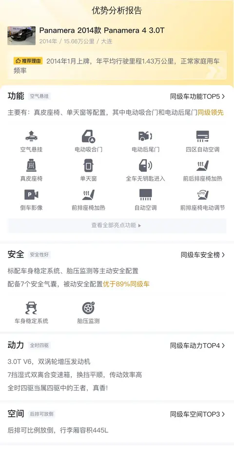 按照懂车帝对Panamera 2014款 Panamera 4 3.0T的分析,这款车在配置、动力等方面有一定优势。接下来,让我们进一步了解这款车的整体表现。