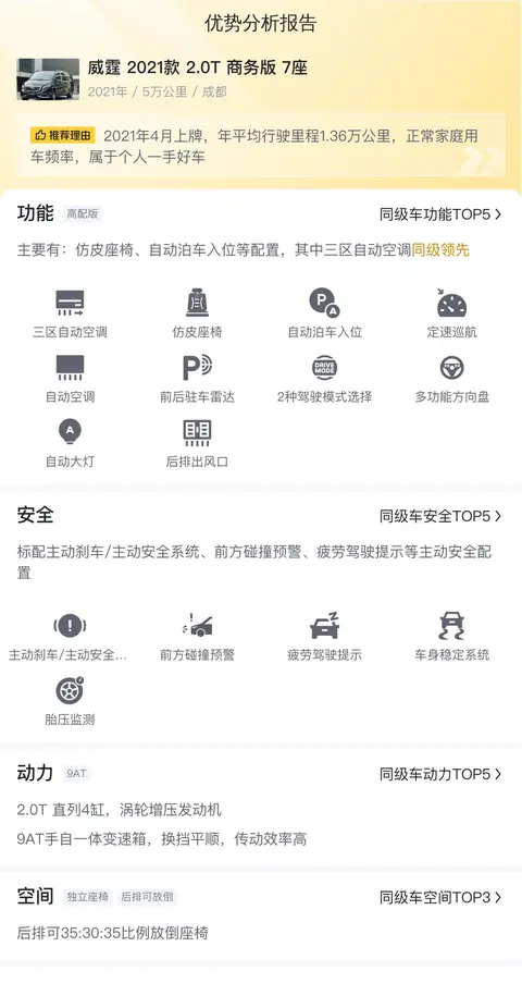 从这张图中,我们可以看到威霆 2021款 2.0T 商务版 7座在同级别的几款车型中的价格是什么水平,当然每辆车的车况不同,会存在合理的价格差异。