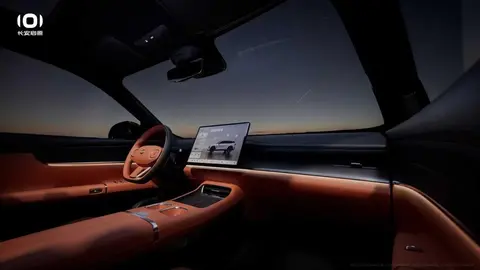 从此次曝光的官图来看,长安启源C798内饰采用家族式设计语言,环抱式的座舱布局十分简洁,搭配厘米白、吉好橙两种配色,看起来十分温馨。此外,中控台配有可旋转的“向日葵”显示屏,传统的仪表区域则为AR-HUD增强现实抬头系统所代替,同时,副驾屏传统化妆镜位置配有12.8英寸的娱乐屏,科技感十足。而扶手箱前端则为双杯架和无线充电面板,从设计上来看,长安启源C798是比较偏年轻化的。