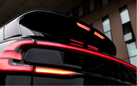 启源 C798的尾部同样采用了贯穿式尾灯,与在售的E07较为相似,拥有极具辨识度的家族设计风格,并且尾灯两侧采用分层式造型,配合两段式高位刹车灯,视觉效果还是非常不错的。此外,新车后风挡的倾斜度并不大,如此能尽可能地保障后备箱的空间,强化整车的实用性,值得一提的是,该车高位刹车灯中央处配有摄像头,或为车内流媒体后视镜,在科技配置上还是能给到不小的惊喜的。