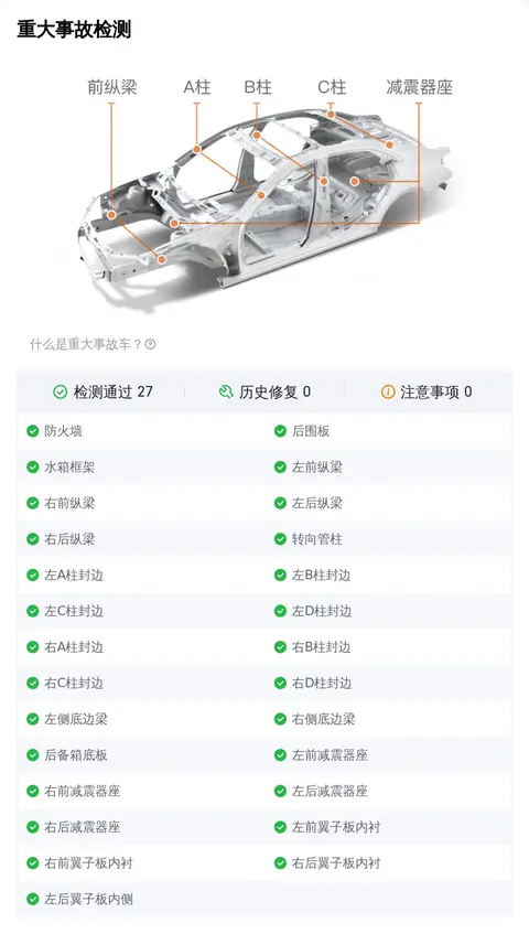 在车况部分,除了外观、内饰功能的检测,更多买家关注的是这辆车是否为“三非”车辆,三非就是指非重大事故、非火烧、非水泡。因为事故车、泡水车、火烧车都存在较大的安全隐患。不过您放心,这辆车已经通过了事故检测、火烧检测和泡水检测,可以确定它非重大事故车、非火烧车、非泡水车。